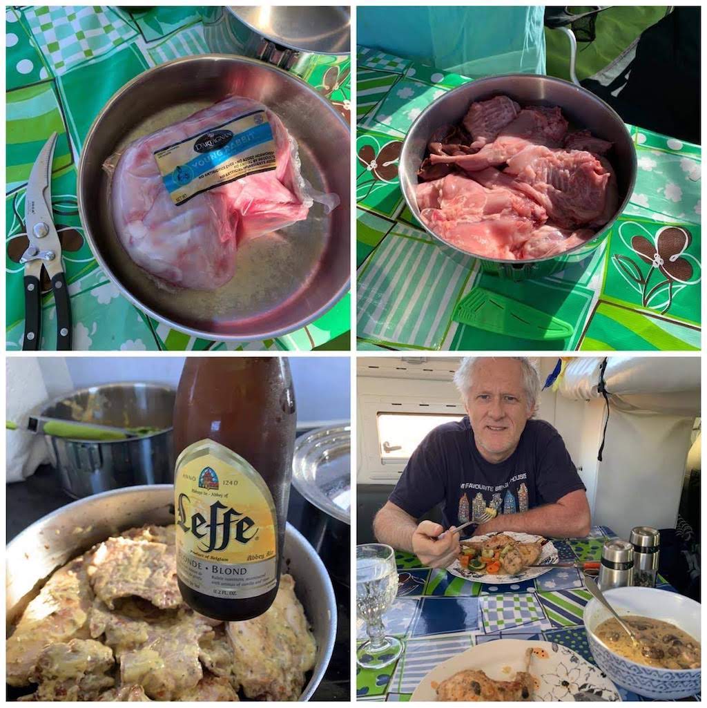 We found a nice spot to stop for the night, just below Mc Kittrick Summit. Caroline prepared rabbit for dinner. And surprisingly, we also had internet.