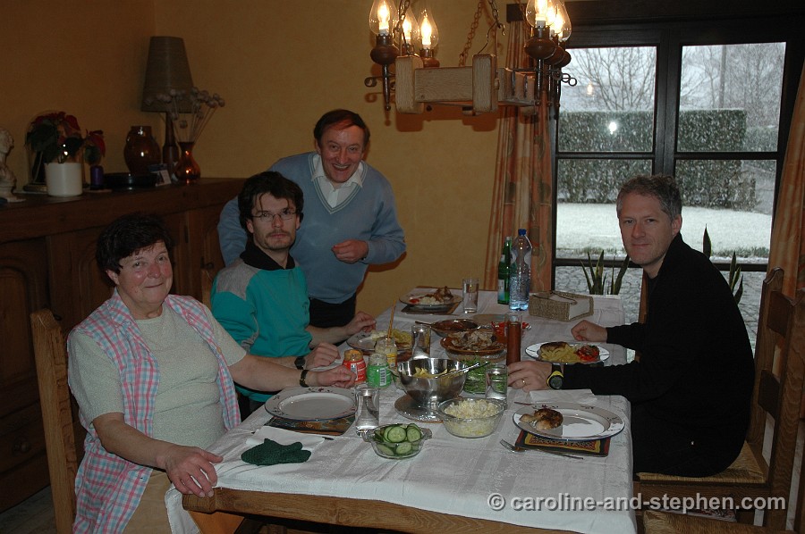 13 Lunch: mum, Stefaan, Robert and Stephen. And yes, it's snowing. |