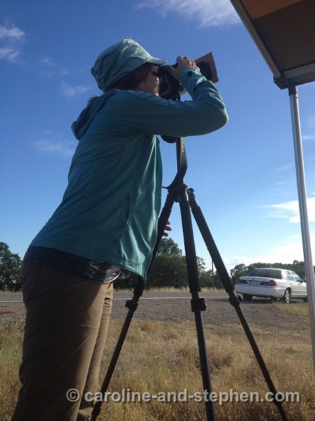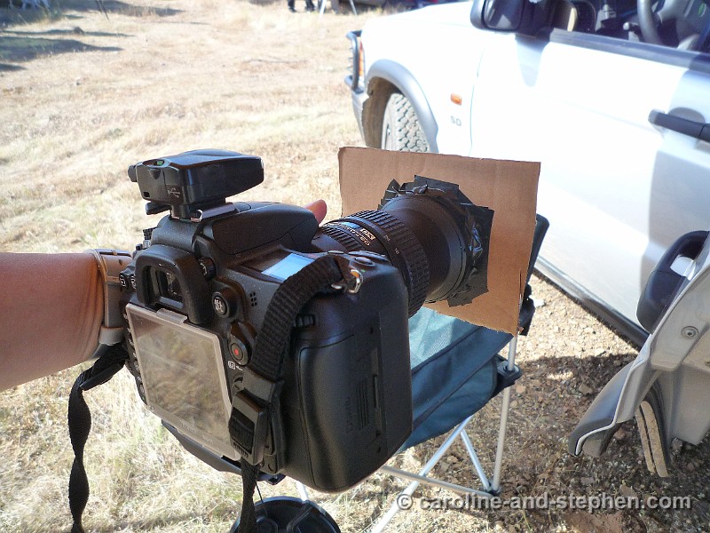 3May 20, 2012. Stephen cut up a pair of eclipse glasses and with some cardboard fabricated a solar filter.