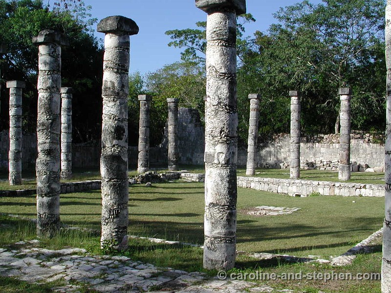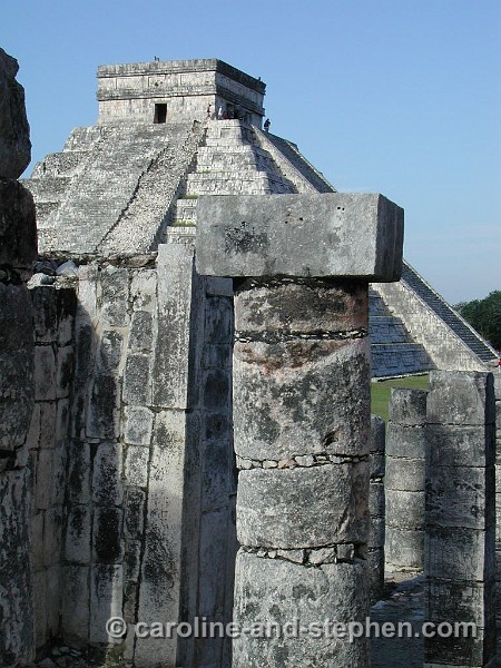 32 Grupo de las Mil Columnas with El Castillo in the background