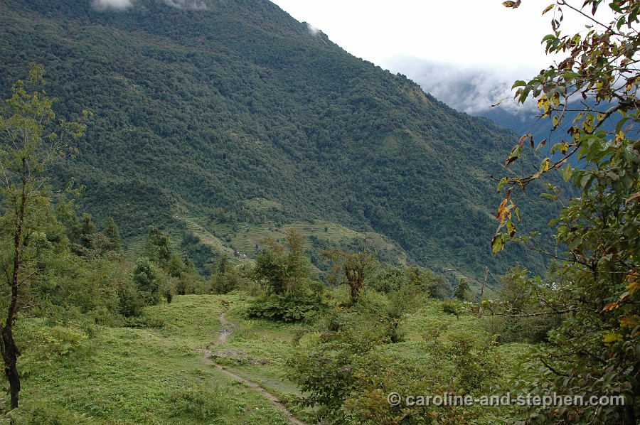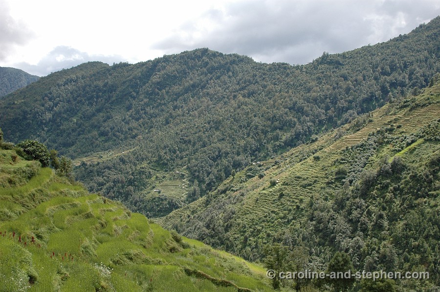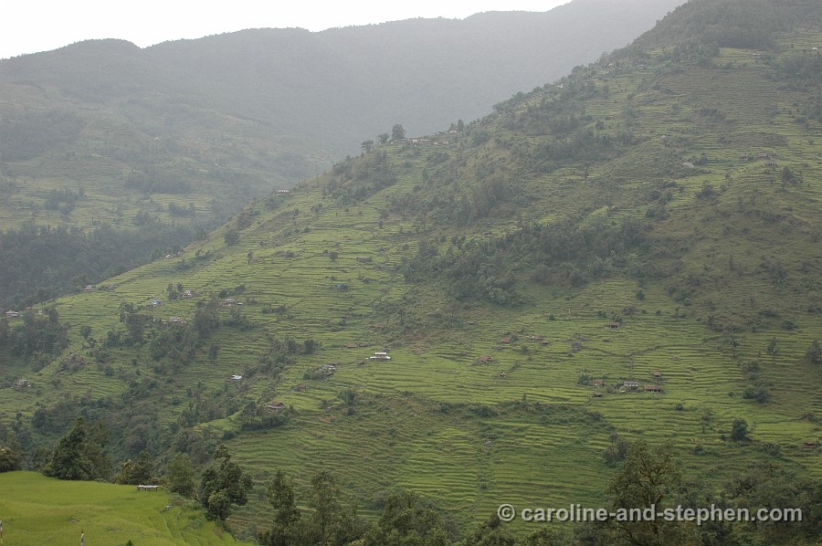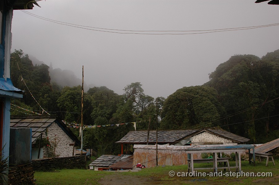 30 Day 5: morning break in Sinuwa; we came from the lodge in the top left corner (Chhomrong). No more photos of that day... the weather (read rain again) turned really nasty.