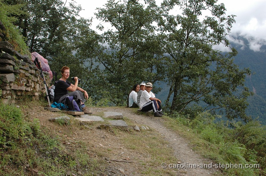 16 Day 3: Tea-break. Francis, my trekking partner, and Nirma, our guide.