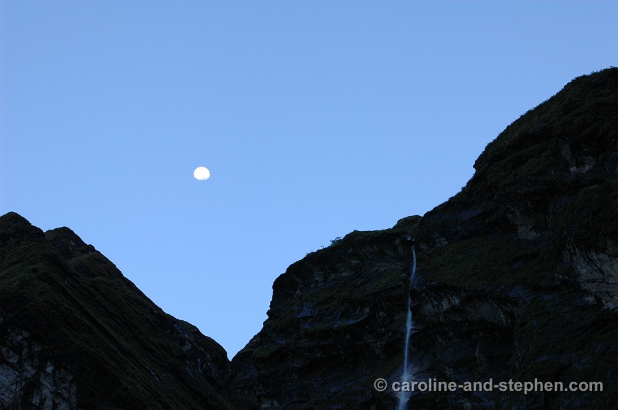 32 Day 7: And then the weather changed: moon over the mountains in the early morning from the tea-house at Dovan.