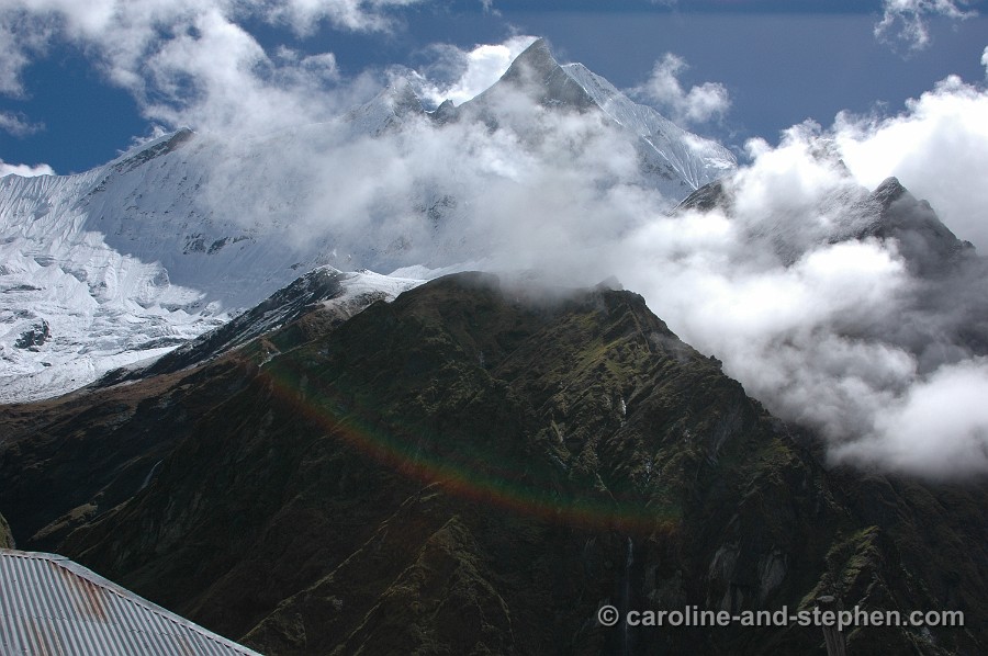 27 Day 4: the most perfect rainbow ever - close to our destination for that day, Chhomrong.