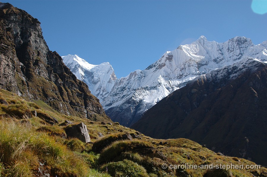 29 Day 5: morning break at Sinuwa, already across the valley from Chhomrong.