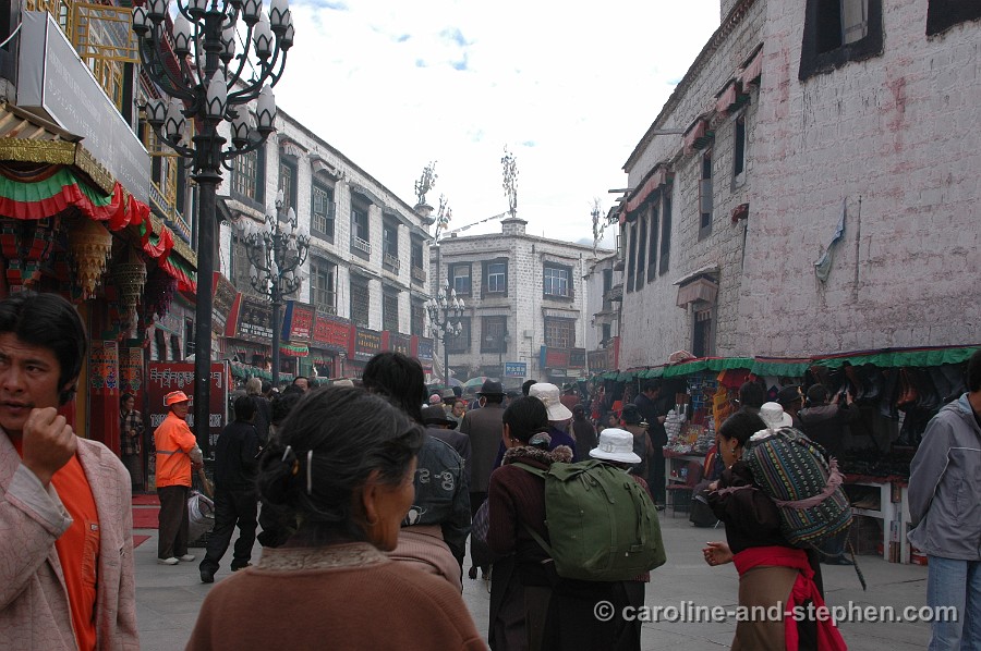 1 Pilgrims walking the Barkhor circuit (clockwise around the Jokhang).