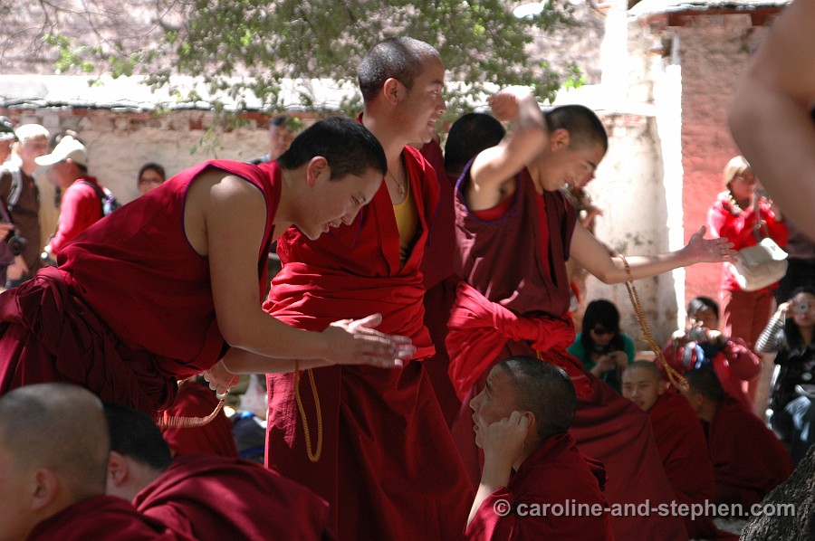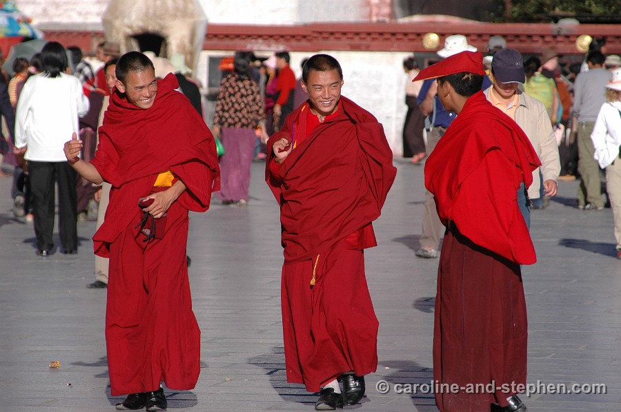 2 Prostrating pilgrims at the Jokhang, the most sacred Tibetan religious place.