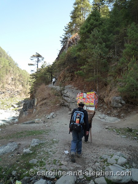 11Day 3. Just when I was getting very tired I ran into Kathy. She was a member of Stephen's expedition (on her way back due to injury). She told us that Stephen and team were in Deboche and that gave me my second wind! Stephen and Kathy had climbed together 3 times before.