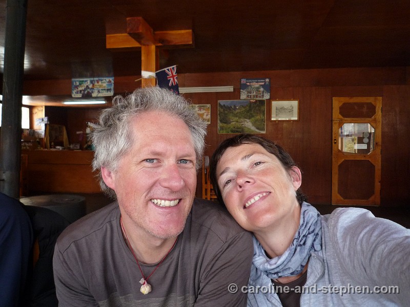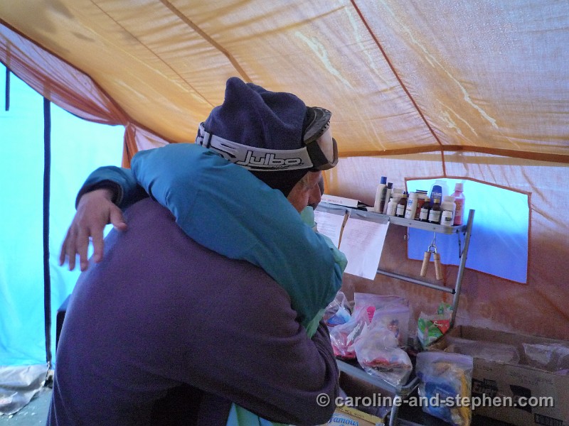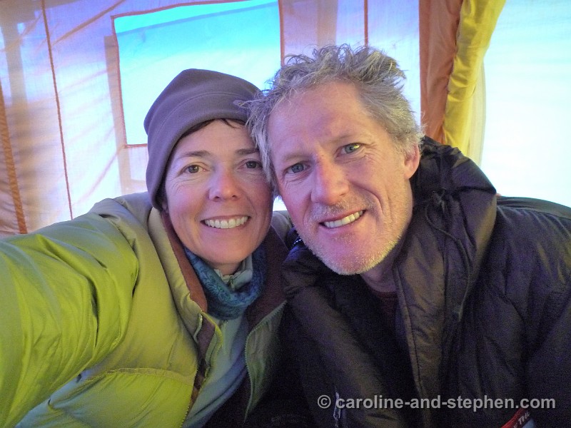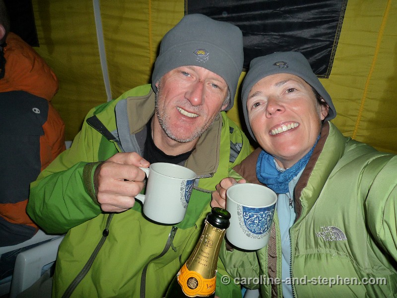 63Day 17. The bottle of Veuve (given to us on Stephen's Everest party by Audrey and Larry) survived and was much appreciated - despite one of us being tired to exhaustion.