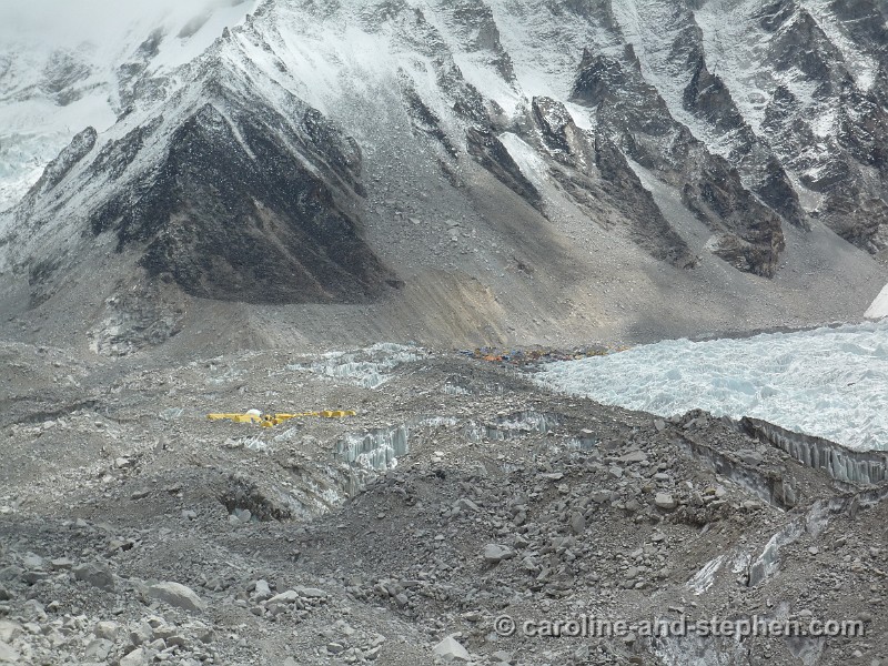 32Day 9. First glimpse of Everest Basecamp, which is built on the glacier.