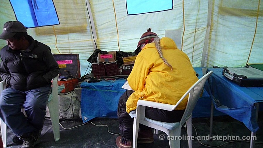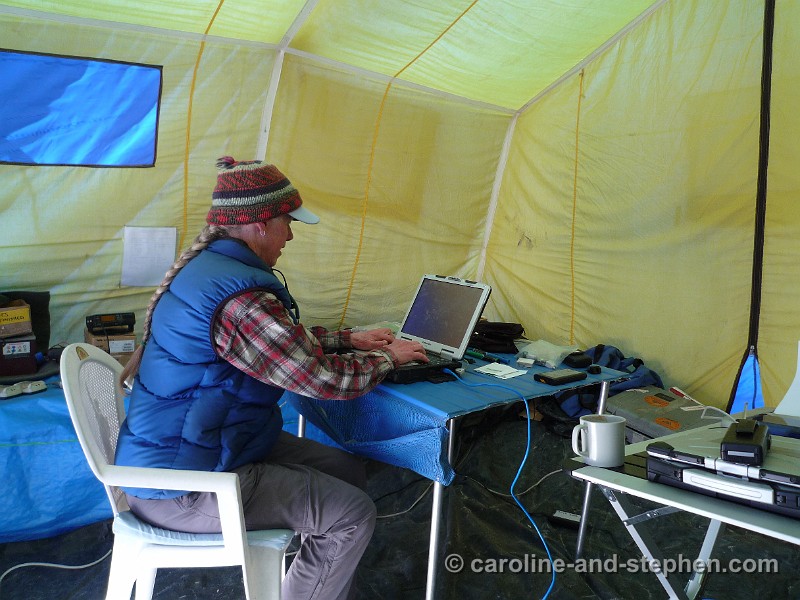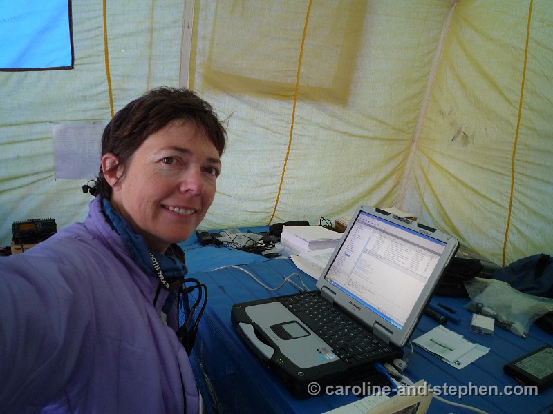 45Day 14. Ellie (AAI's Basecamp Manager) keeping communications with the outside world up to speed.