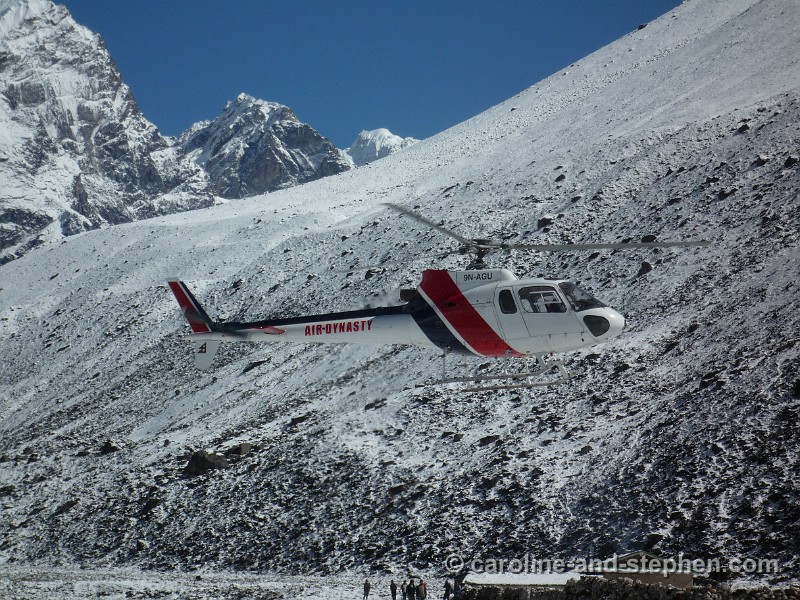 65Day 19. The whole previous day we had marched in snow conditions to Pheriche. On the 27th we woke up to blue skies and we started hoping that the helicopters were actually going to make it...