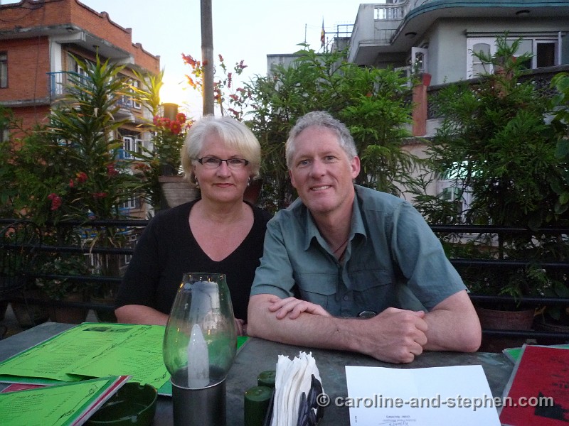 73Après EBC. May 28 - KTM: Alison and Stephen in the 'Fire and Ice' Pizzeria in Thamel.