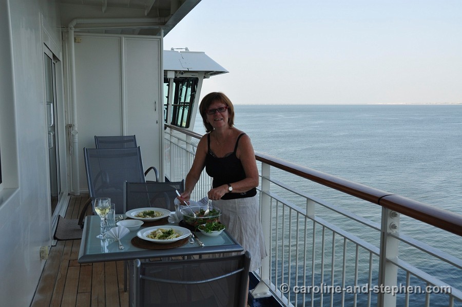 20July 9th, 2010 Enjoying champagne with Kristien while approaching the Atlantic Ocean.
