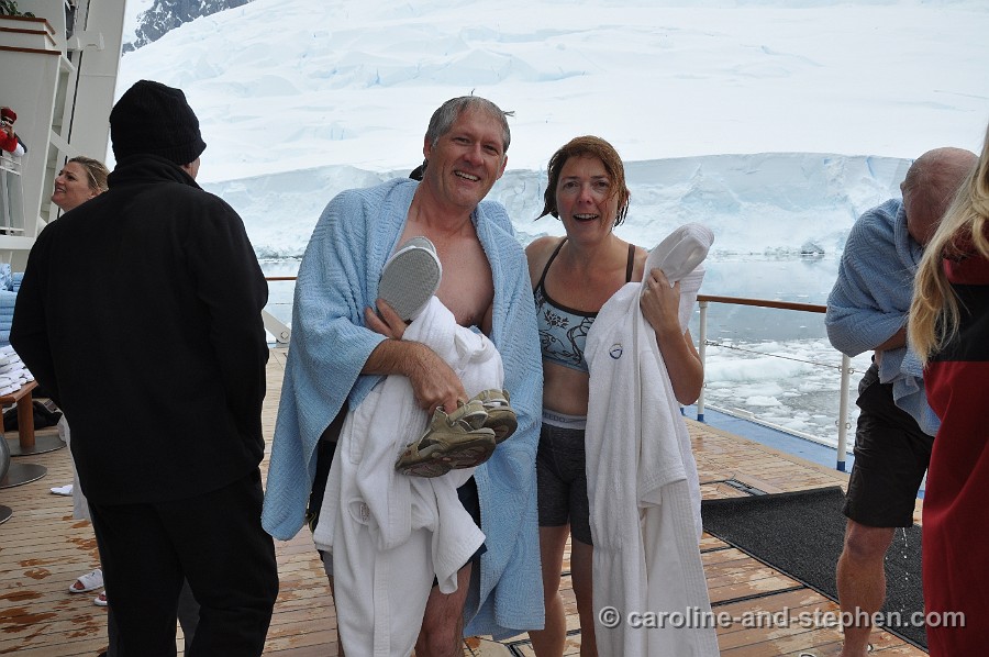 In the morning we were anchored in Marguerite Bay, off Porcquoi Pas Island. In the afternoon we took The Polar Plunge.