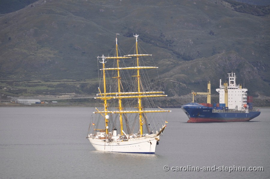 1 The German naval training ship Gorch Fock was anchored in Ushuaia. At the time there was an ongoing investigation into a death on board and possible mutiny.