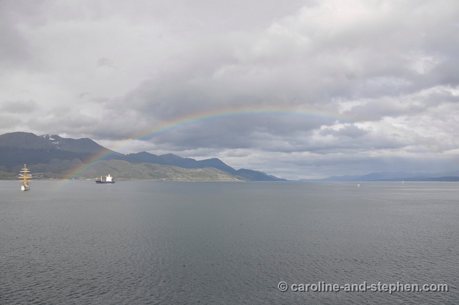 2 Sailing out of Ushuaia under a rainbow into the Beagle Channel.