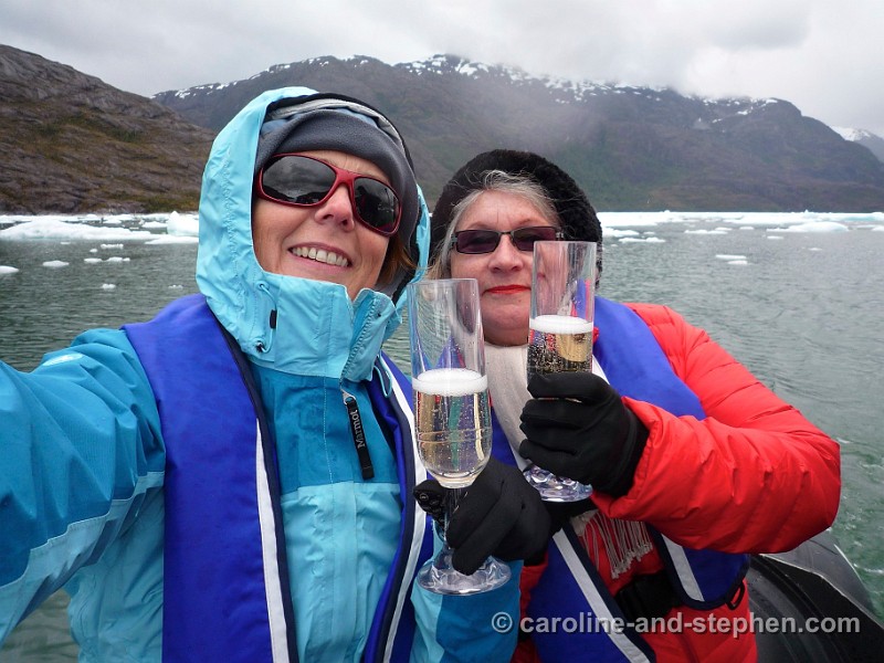 13 Alison and I were lucky to get the 'Champagne Zodiac'. One of the residents had brought champagne to celebrate Robert Burns Day. Zodiaccruise at the Europa Glacier.