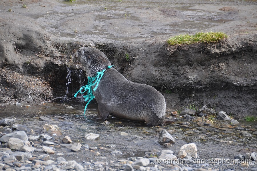 24 We saw this little guy with fishing netting around his neck, which would eventually kill it. Members of our expedetion team manged to cut it off and give it a chance again.
