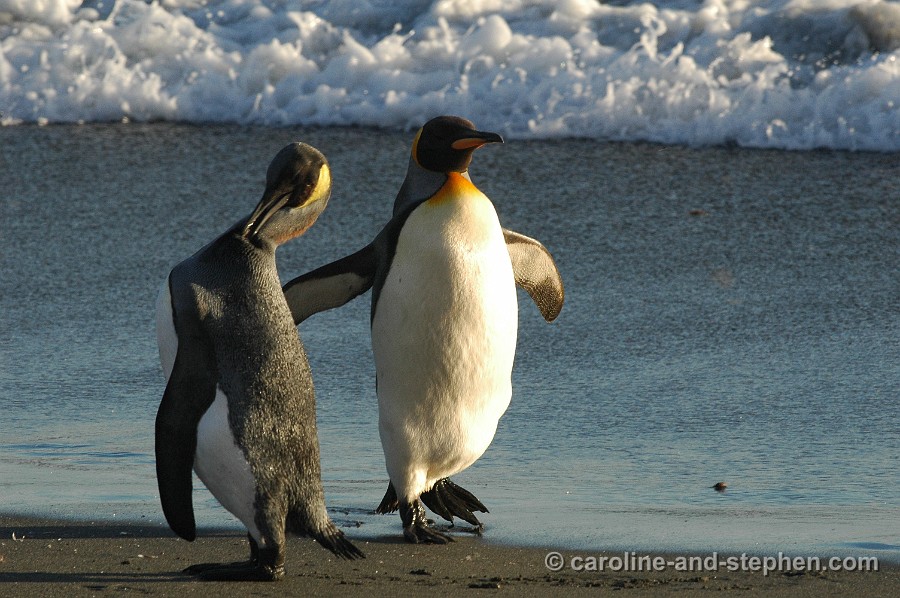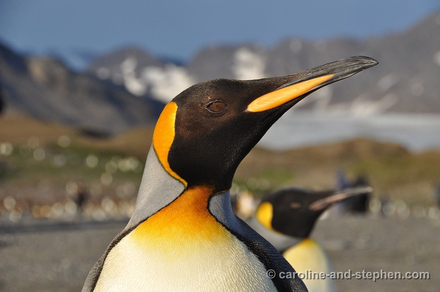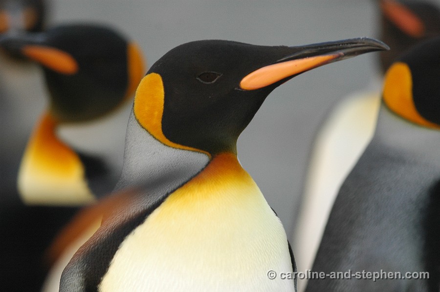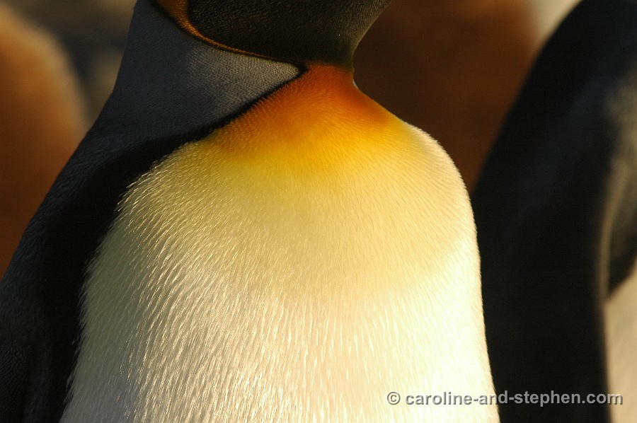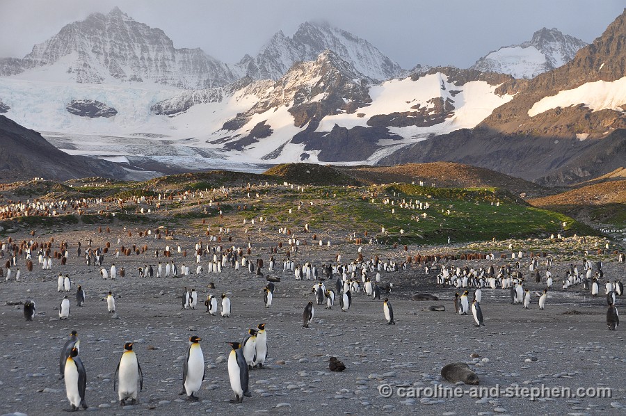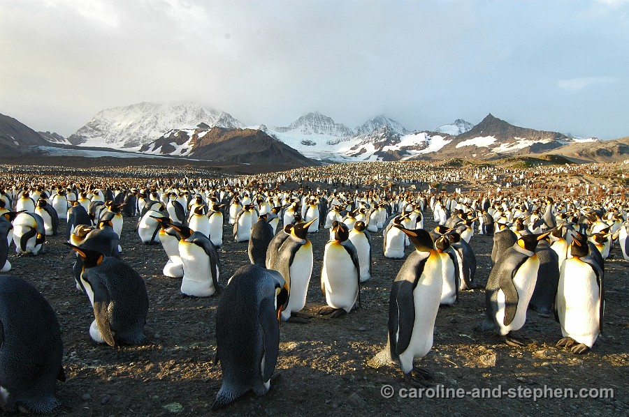 The early sunlight shows the King Penguins in all their glory.