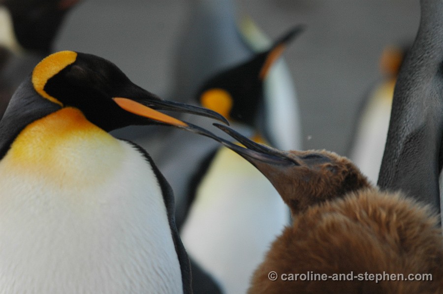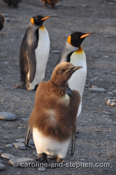King Penguins chicks and one molting adolescent.