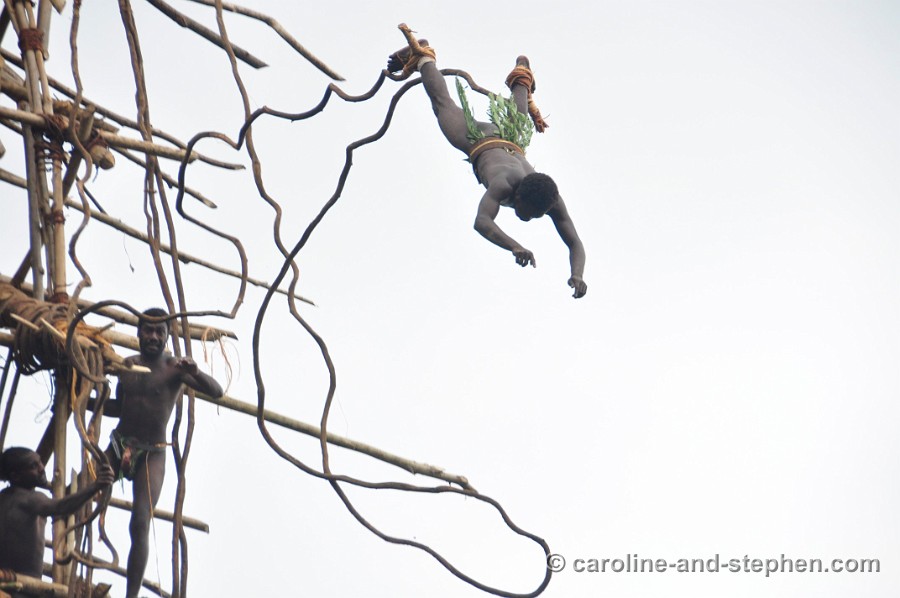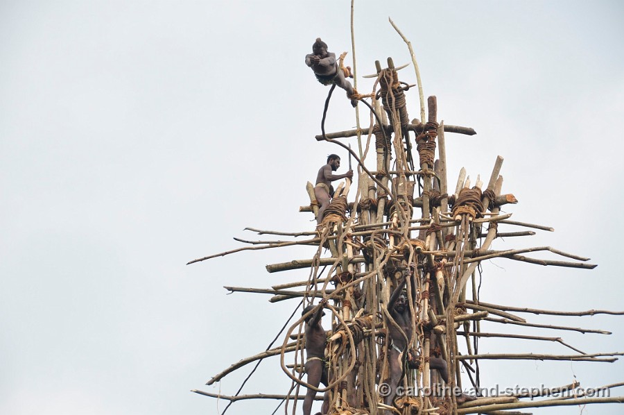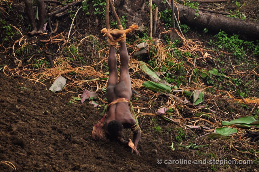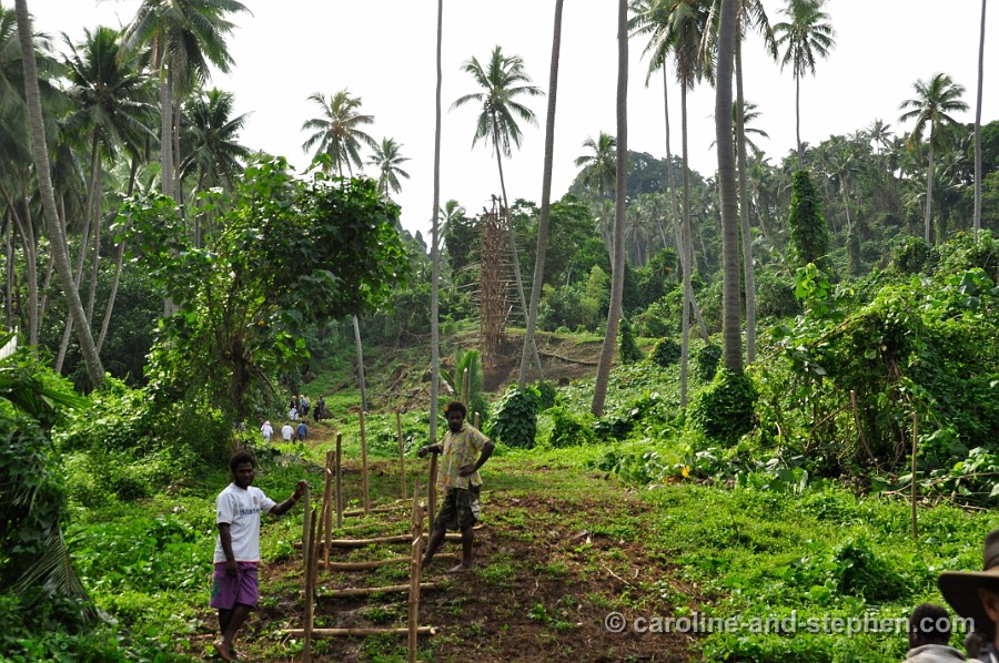 24Pentecost Island. We came here to witness an essential part of the annual yam harvest, the 'Land-Diving of Pentecost'. It is a tightly held and carefully observed ritual that is unique to the island. The villagers built steps for us to help us up the slippery slope.
