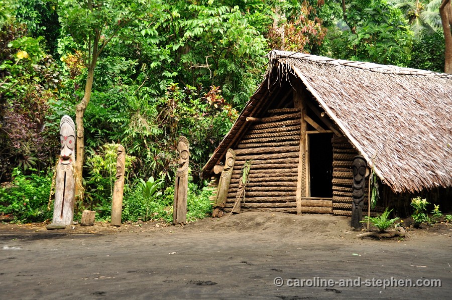 51Ambrym. The setting for the Rom Dance. The building is taboo as this is where the masks and costumes for the dance are made. Anyone caught peeking at them before the dance is subject to a heavy fine.