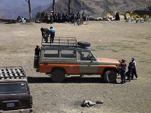Arrived in the township of Pinaya. The 4WD was our private transport to the mountain.Festival